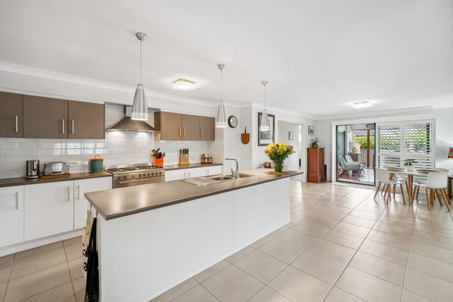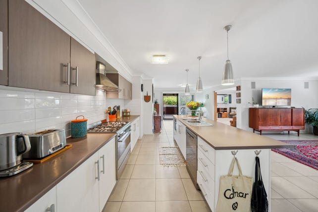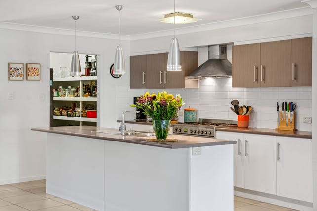The kitchen is well equipped with quality stainless steel appliances including 900mm gas cooktop, electric oven, feature rangehood, plumbed fridge space, dishwasher and a walk-in pantry. There is an island bench creating a breakfast bar with feature pendant lighting.