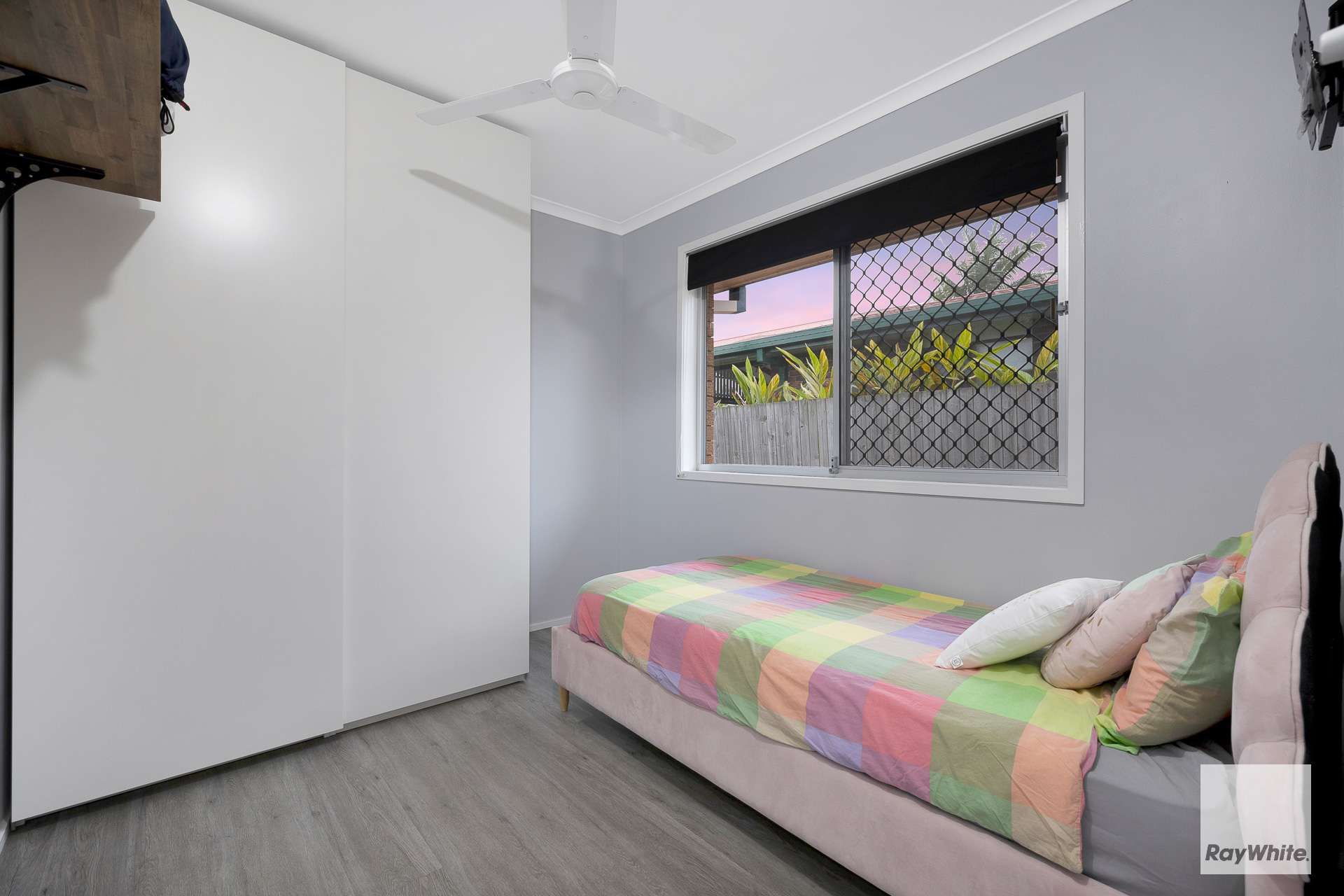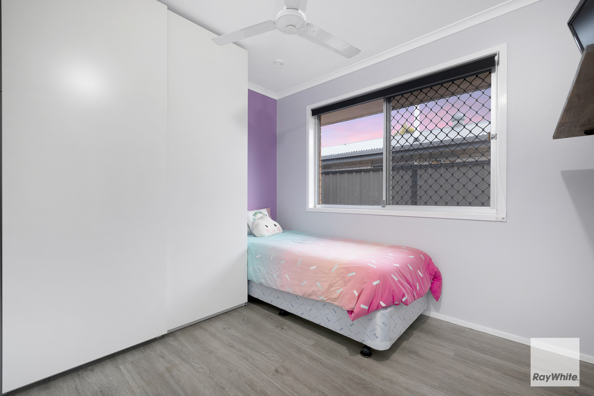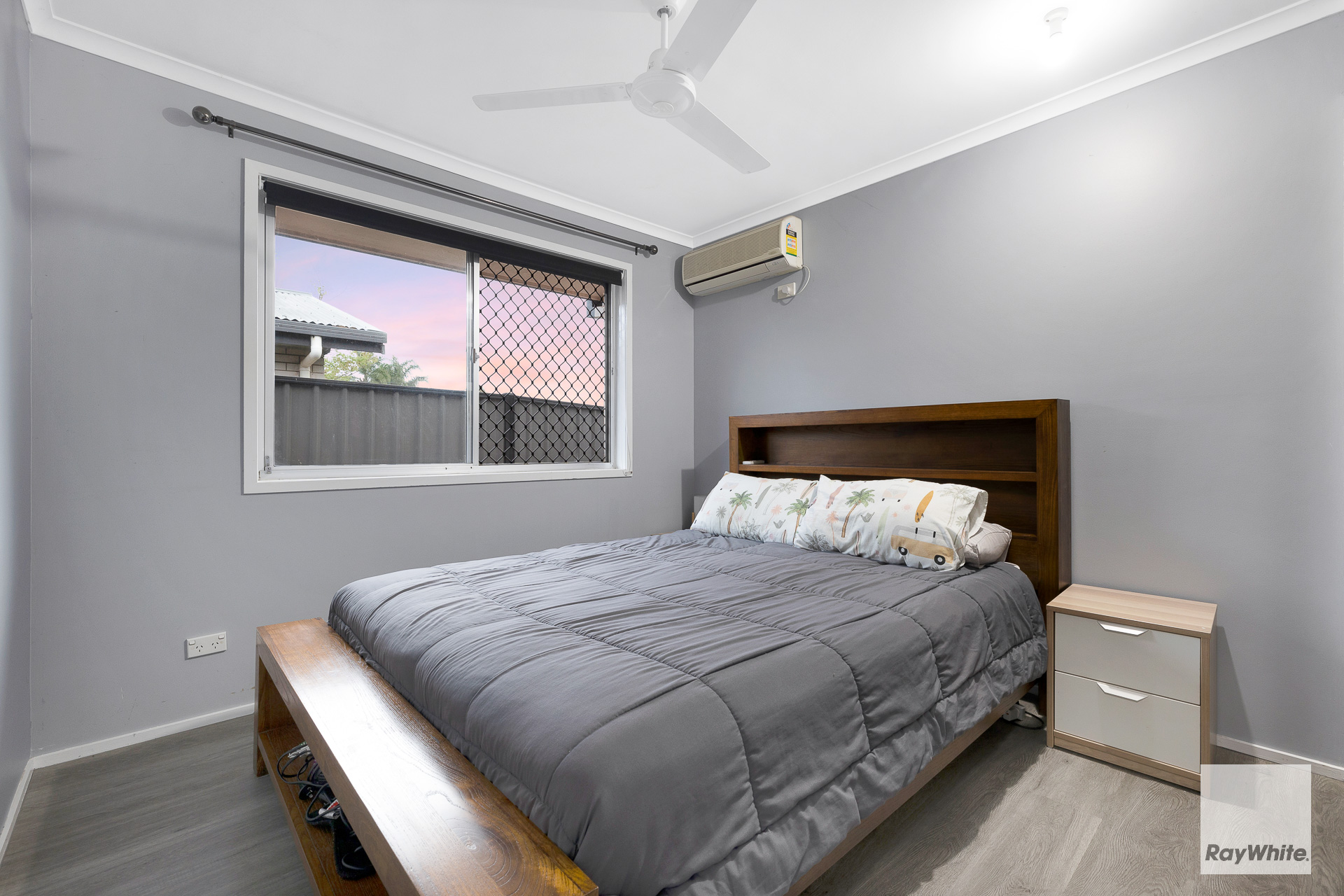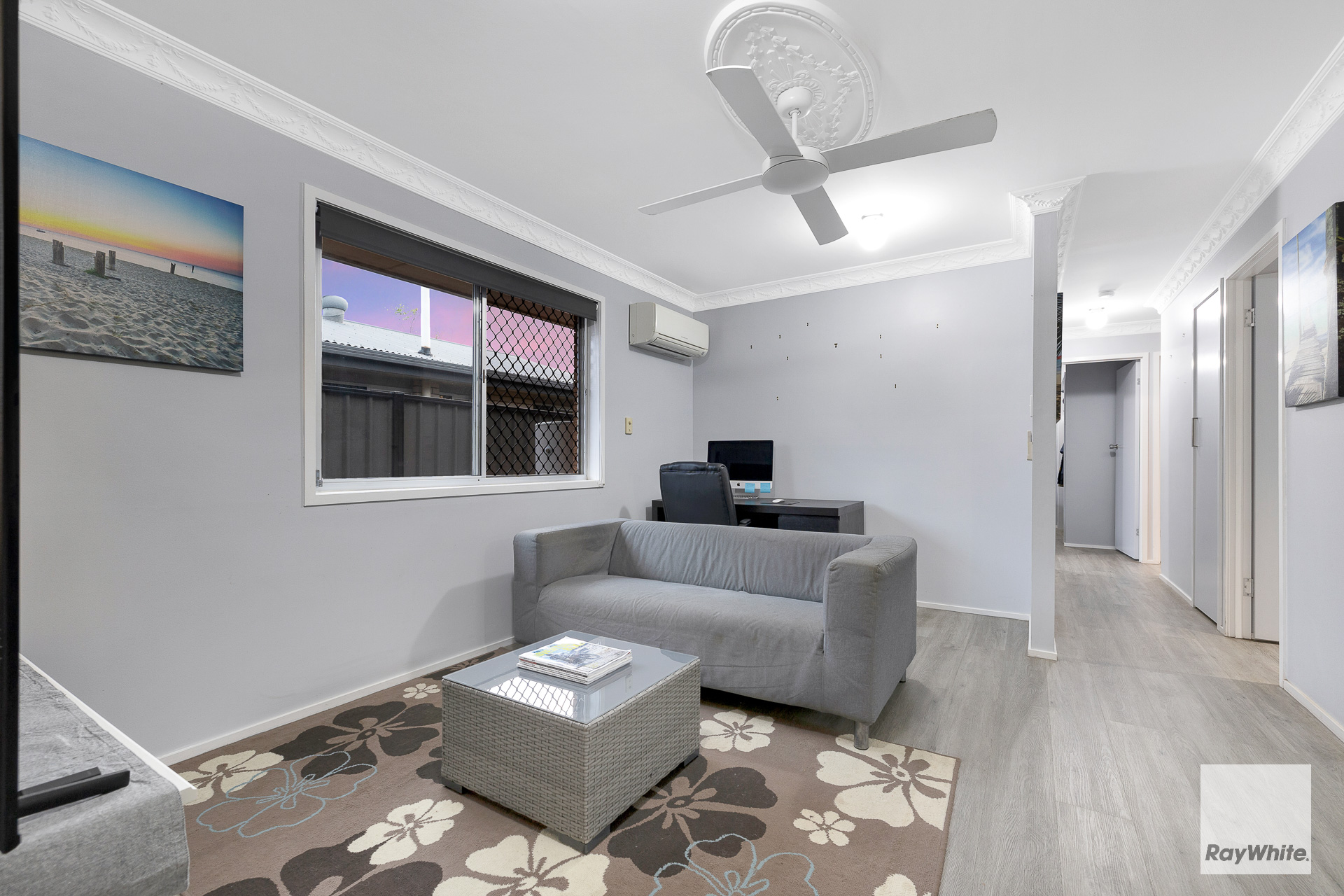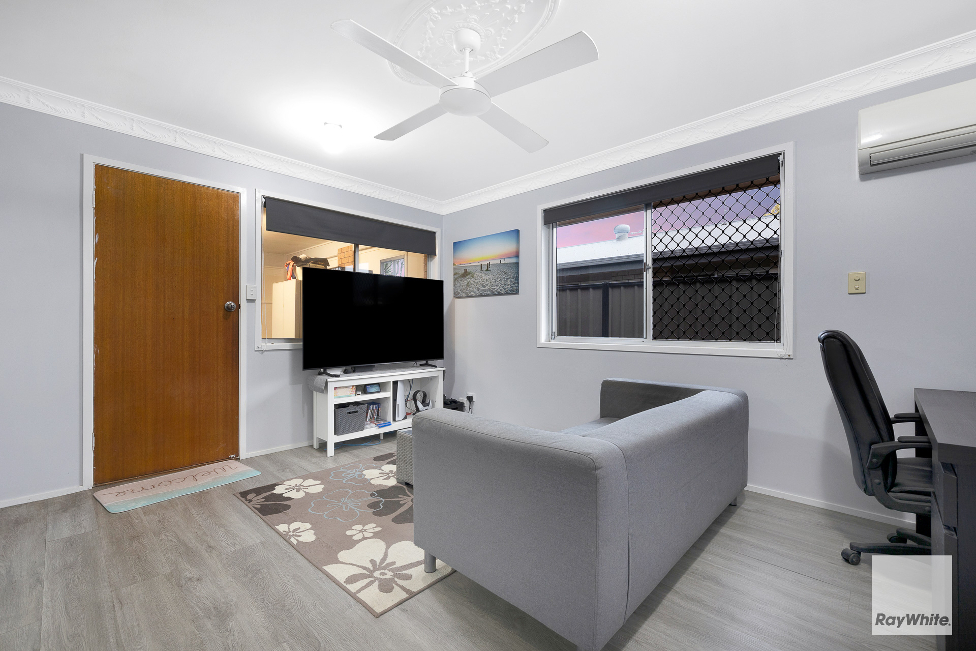 *Enclosed multi-purpose room at the front entrance of the home *Open plan living, dining & kitchen with air conditioning & ceiling fan *Modern Kitchen with electric cooktop, oven, dishwasher & ample bench & cupboard space *3 Bedrooms - all including wardrobes & ceiling fans - Master bedroom with air conditioning *Main Bathroom features spacious shower, single vanity with storage & separate toilet *Spacious modern internal laundry with ample bench & storage space *Timber laminate flooring throughout the entire home *Security screens throughout