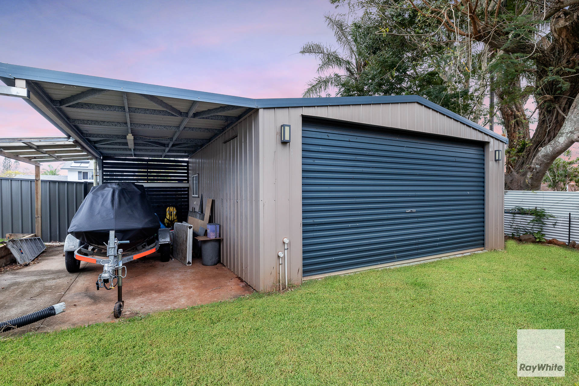 *Side access - perfect for small car, jetski or trailer *Titan double bay shed + additional single carport
