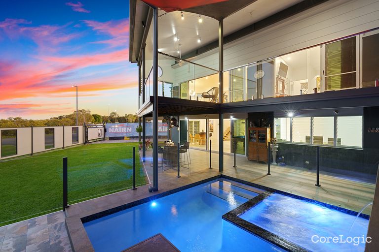 Wet Bar and Pool Room, opening onto a sprawling pool/spa deck for ultimate relaxation 580-Bottle Temperature-Controlled Walk-in Wine Cellar with a hidden entry door, a true entertainer's dream Uninterrupted Moreton Bay Views from every key living space