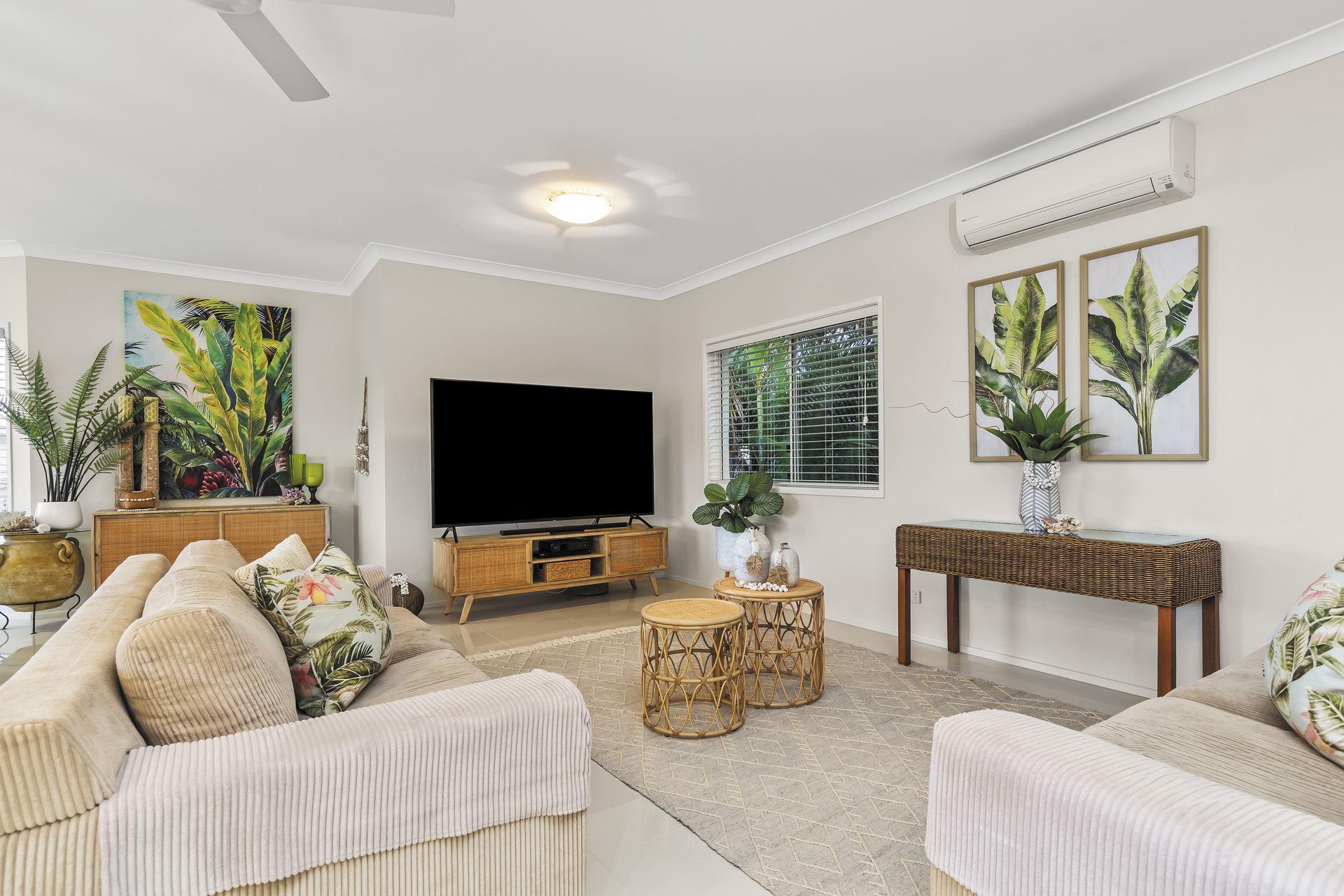 As you enter, a sense of tranquillity envelops you. Each of the spacious bedrooms feature ceiling fans and built in robes, ensuring comfort in every corner. The upstairs living area, main bedroom and study are further adorned with their own split system units, providing personalized climate control throughout the seasons.