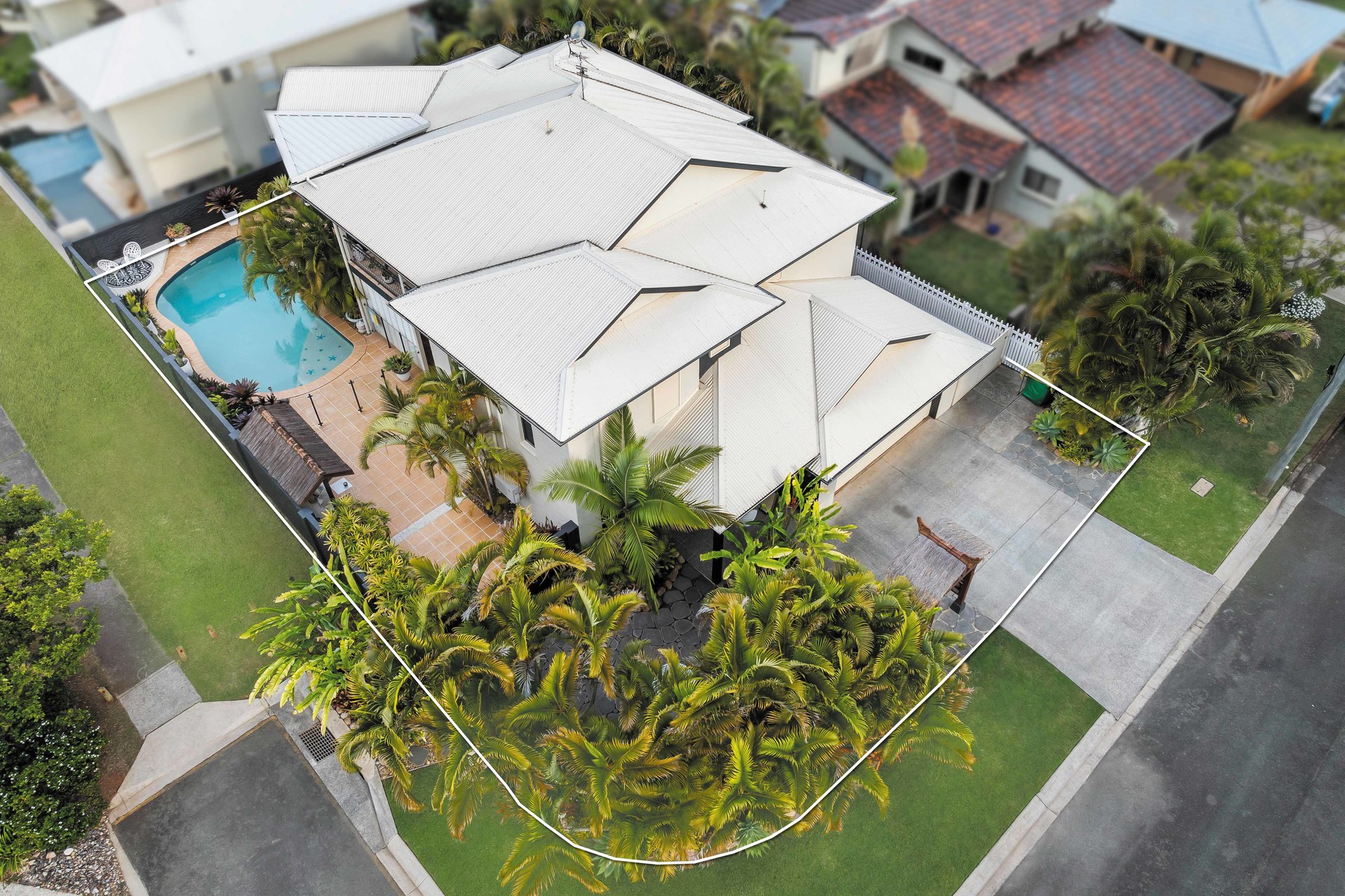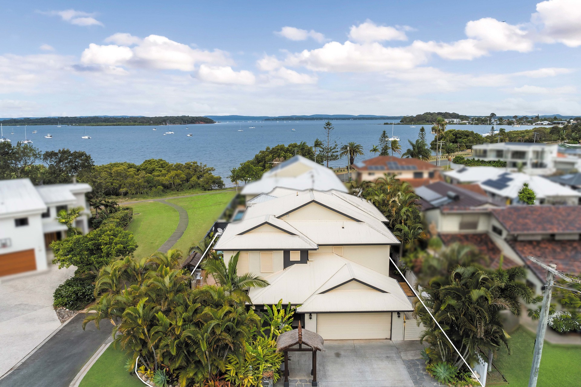 BALINESE – INSPIRED BEAUTY WITH BAYVIEWS In the tranquil enclave of Victoria Point, nestled within a quiet cul-de-sac, a sanctuary of Balinese-inspired beauty unfolds. This exquisite 5-bedroom PLUS study retreat offers a harmonious blend of luxury and tropical allure, promising a lifestyle of serenity and indulgence.