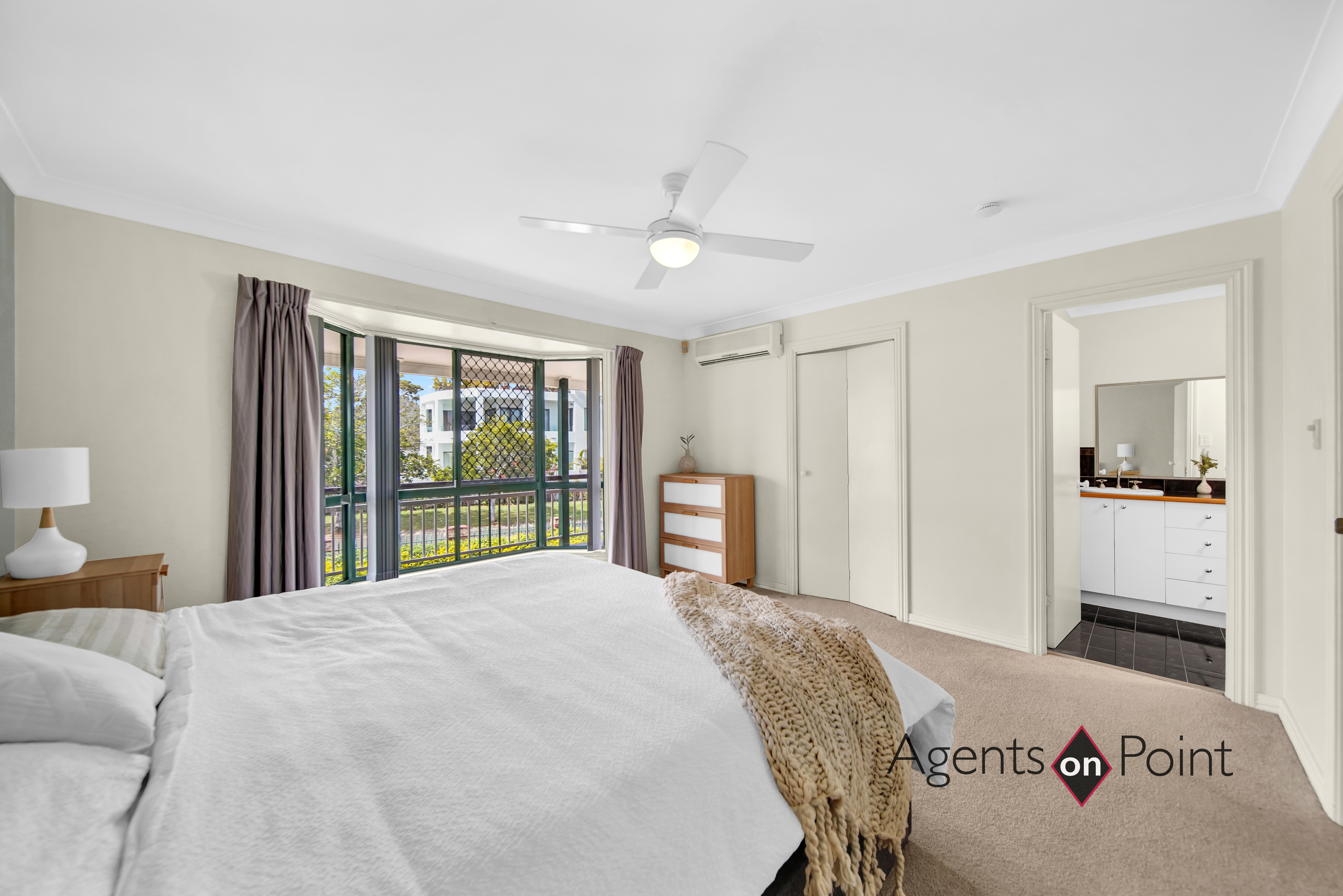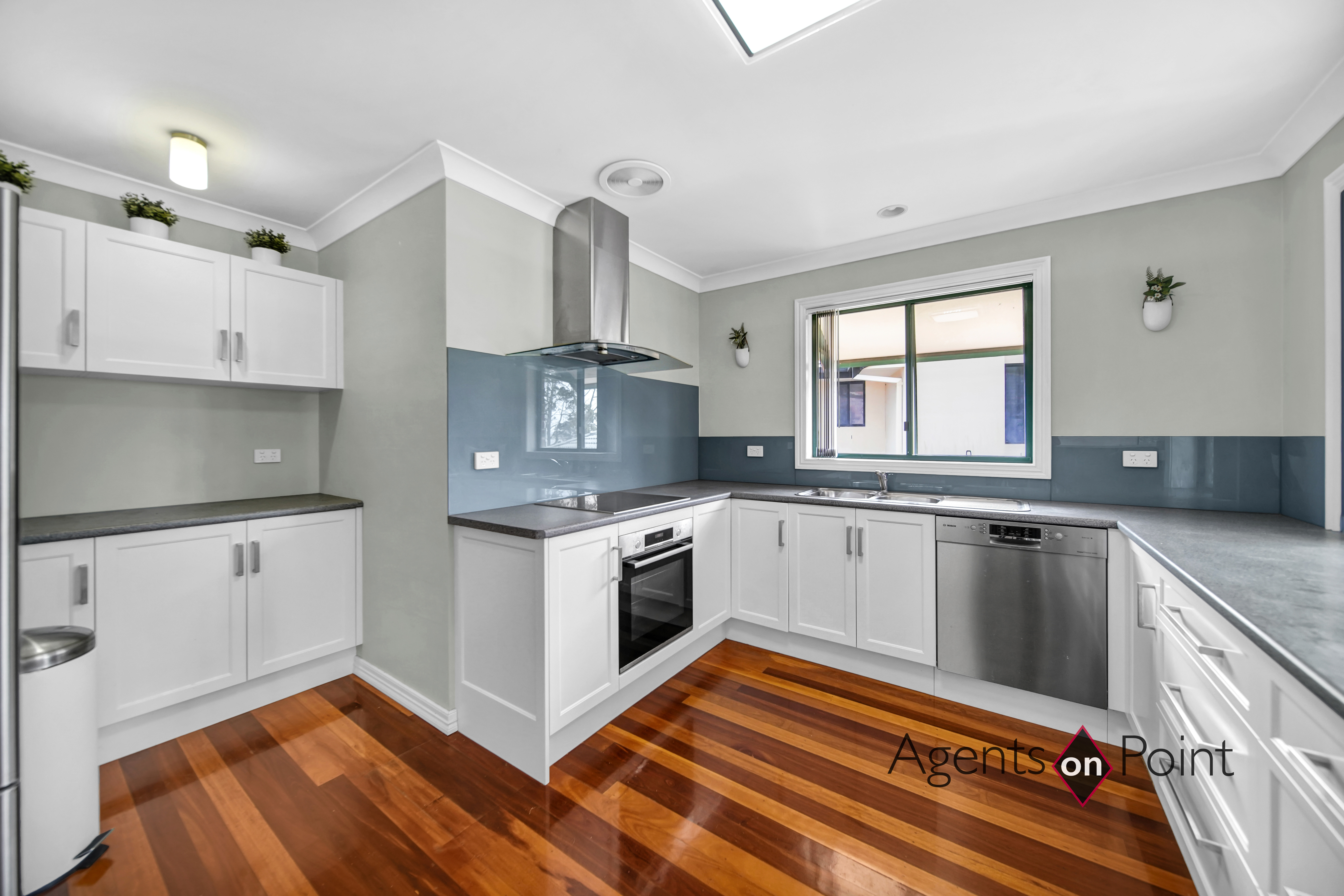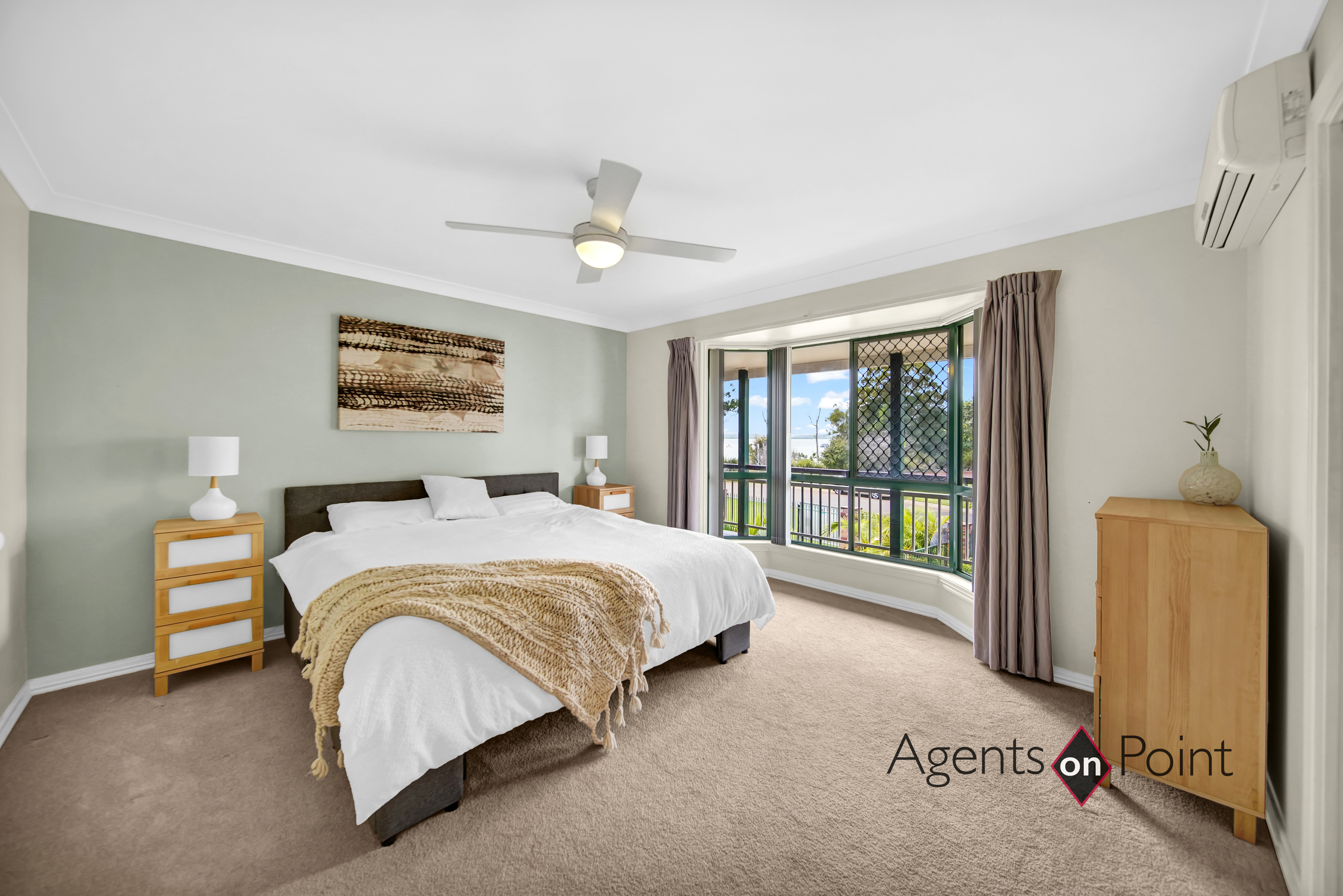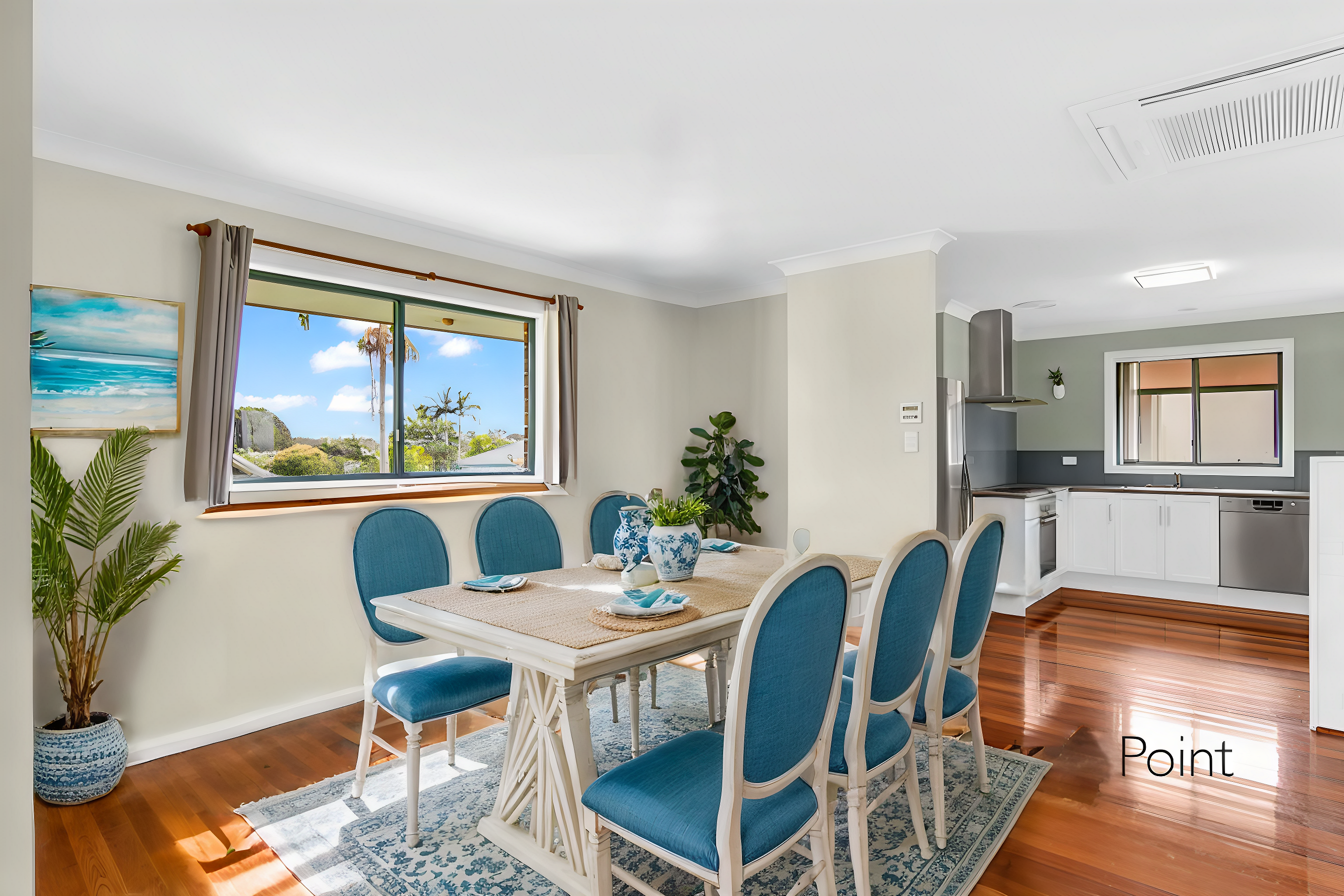 Upstairs • Double storey, 4 spacious bedrooms, 2.5 bathrooms, brick home, tiled roof • Master bedroom with bay window, fan, air-conditioning, walk-in-robe, ensuite with corner bath, shower, toilet and double vanity • Bedroom two built-in-robe and fan • Powder room with toilet and vanity • Modern Kitchen with laminate benchtops, double sink, soft close cupboards, corner cupboards and drawers. Bosch dishwasher, Bos, ach oven, Bosch ceramic cooktop, rangehood and a Butlers nook • Dining with ceiling Fujitsu air conditioning, heating and cooling system • Lounge room with water views, leads to the balcony with stunning views over the water and esplanade • Spacious open-plan kitchen, lounge and dining areas