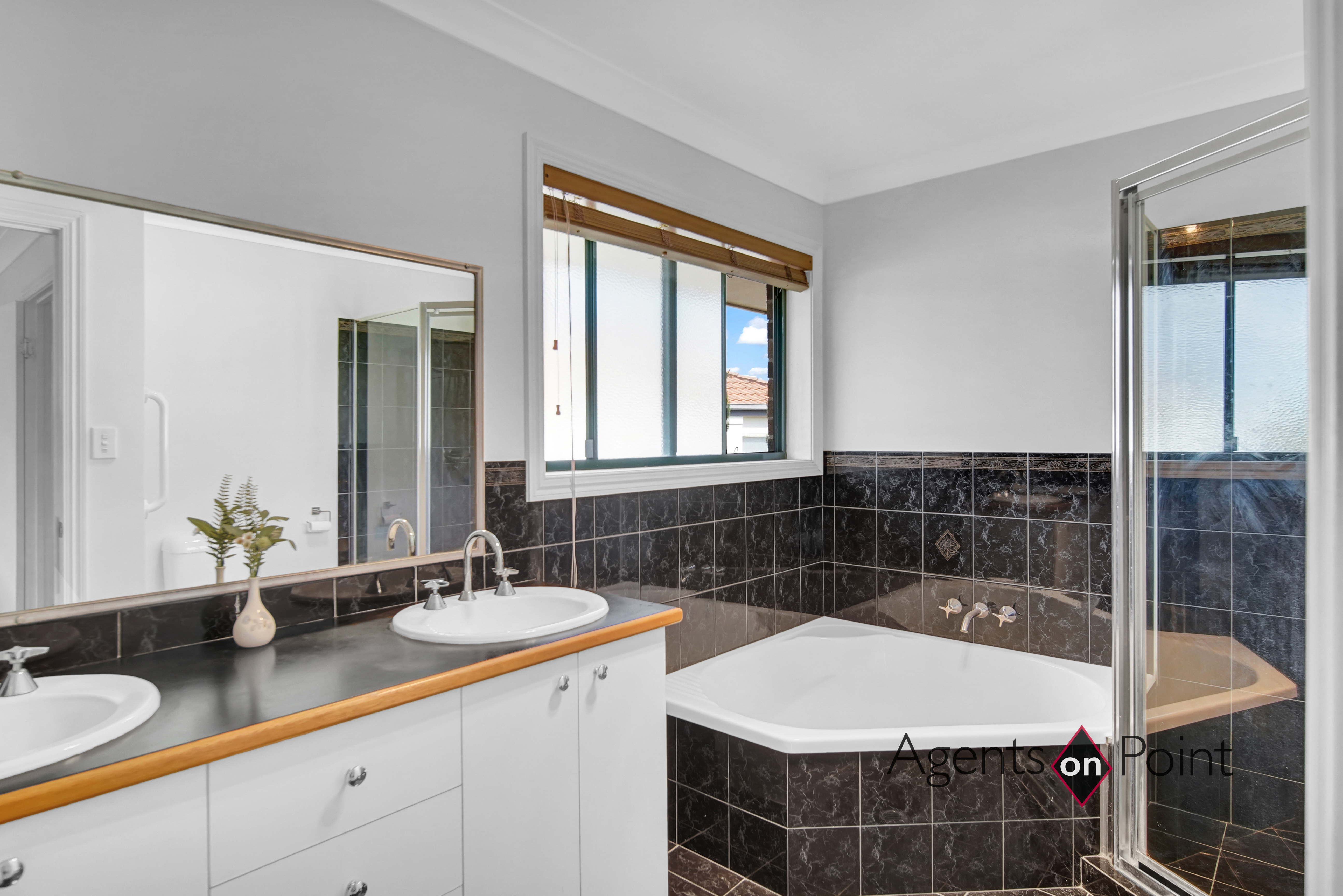 Downstairs • Front entry door with LED light Roses • Massive Tiled Rumpus Room with 3 x glass sliding doors suitable for teenagers' retreat or potential dual living with access to Pool Area