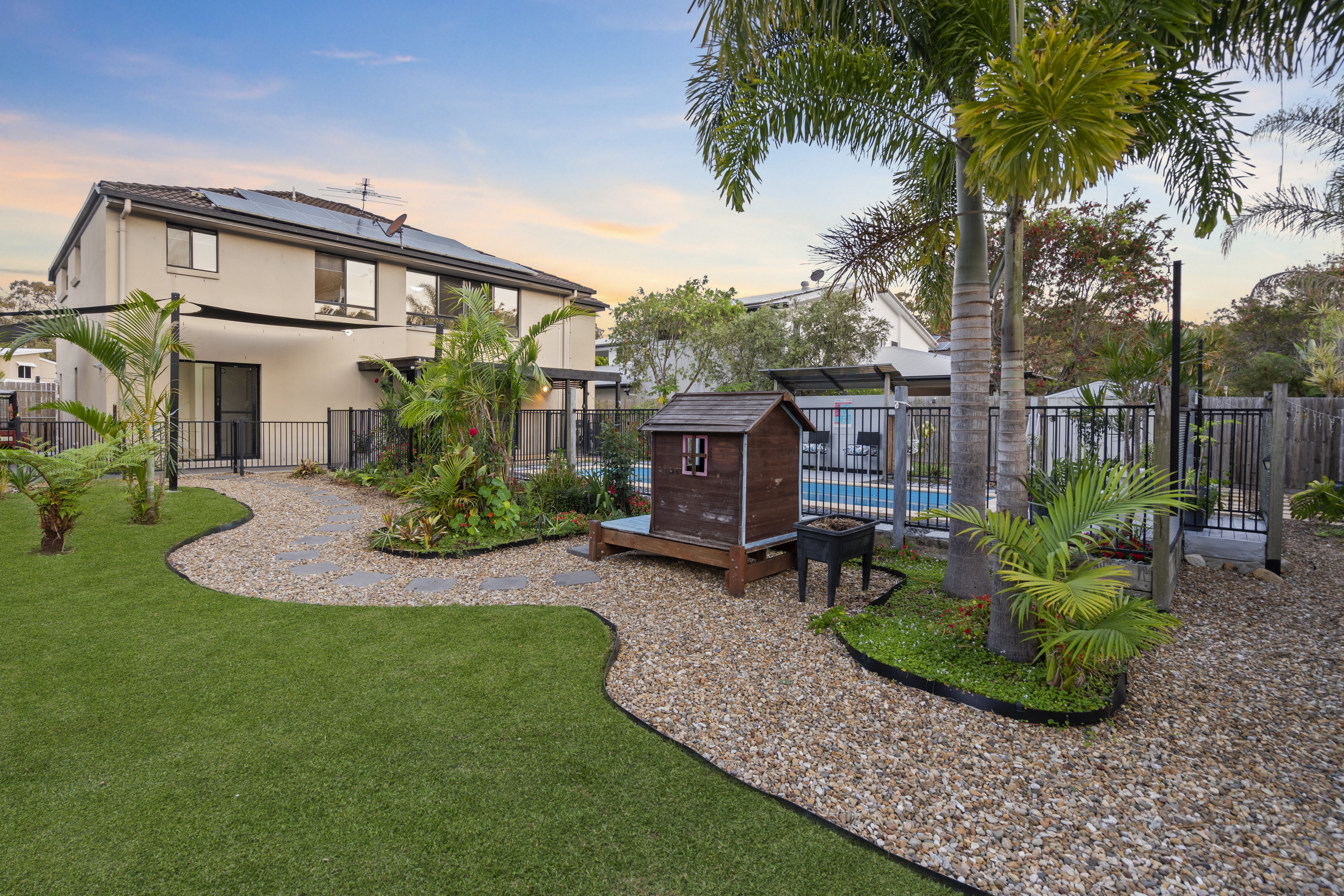 • Ducted and split system air-conditioning for year-round comfort • Energy-efficient 6.6kW solar system • Oversized double lock-up garage with extra parking for boats or caravans • Fully fenced, private yard with landscaped gardens and a charming cubby house • Dual Living Potential On Lower Level